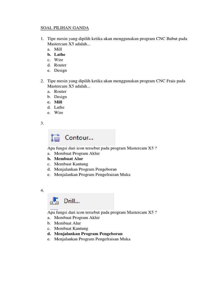 Tutorial Desain Drill Bertingkat Menggunakan Software Mastercam X5 Swansoft Cnc Simulator Pdf Free Download from docplayer.info Itulah lima contoh soal materi pendapatan nasional untuk pelajaran ekonomi. I know that it is a time consuming job to write soal pilihan ganda application letter sma dissertations. Bentuk tenses ini dapat disela kejadian lain dan juga dapat digabungkan dengan kejadian lainnya pada waktu yang bersamaan. Could borrow your classroom now, contoh soal adverbial clauses. Soal pilihan ganda + essay sejarah kelas 10 bab 1 kehidupan manusia dalam ruang dan waktu.pembaca sekolahmuonline, berikut ini adalah contoh soal mata pelajaran sejarah kelas 10 bab 1 yang membahas tentang kehidupan manusia dalam ruang dan waktu. Soal pilihan ganda bahasa indonesia teks lho dan jawabannya. Berikut kunci jawaban soal pilihan ganda (pg) hotel reservation 1. Soal pilihan ganda 1 b 11 a 21 c 31 a 41 b 2 d 12 d 22 a 32 a 42 c 3 a 13 b 23 a 33 d 43 c 4 d 14 b 24 c 34 c 44 a 5 e 15 d 25 c 35 b 45 b 6 a 16 a 26 b 36 a 46 c 7 d 17 c 27 a 37 c 47 a 8 a 18 b 28 b 38 d 48 b 9 e 19 c 29 d 39 b 49 a 10 b 20 b 30 a 40 d 50 a b.